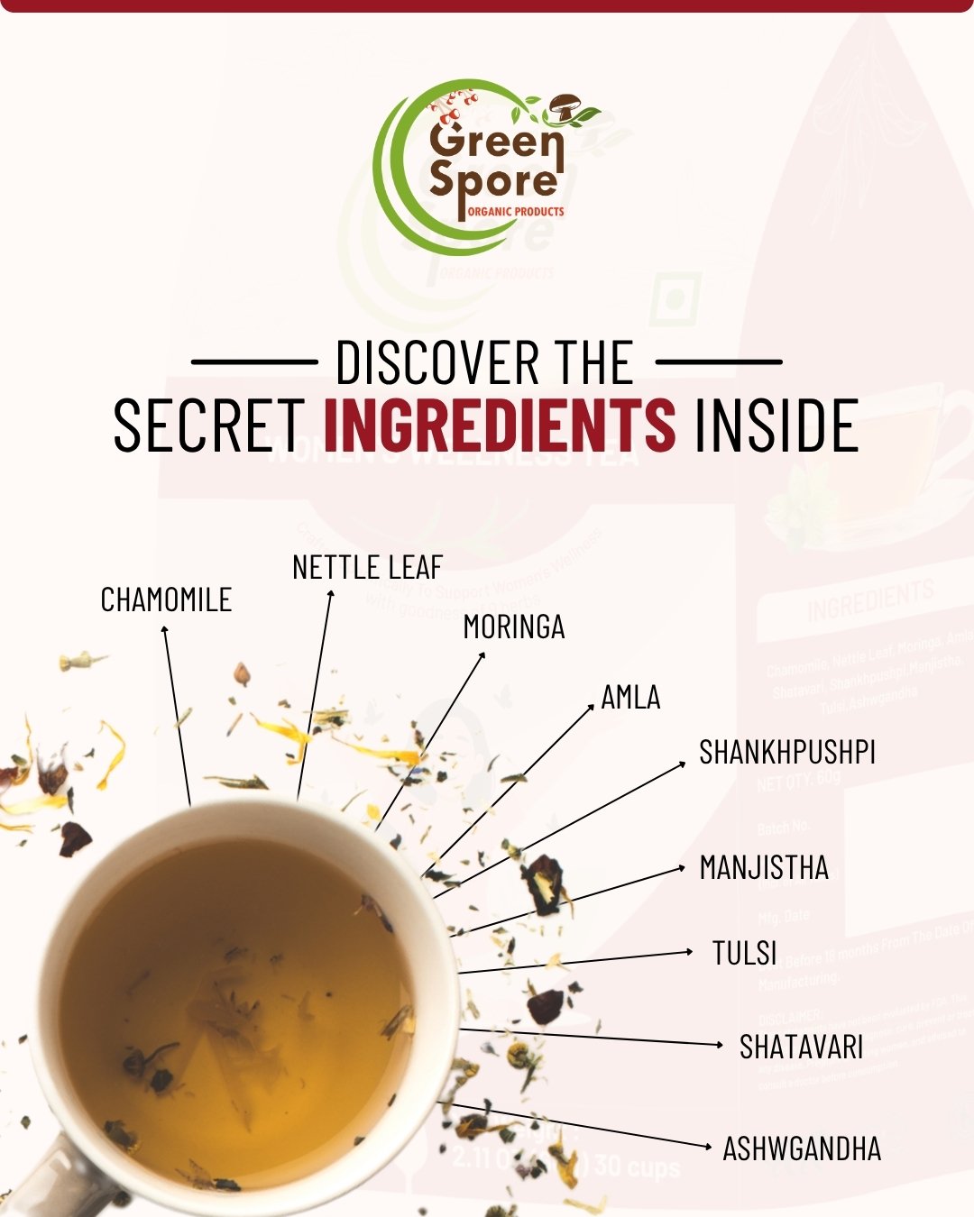 It combines adaptogens, hormone balancers, nervine tonics, and blood purifiers to promote hormonal balance, reduce stress, ease menstrual discomfort, and enhance vitality.